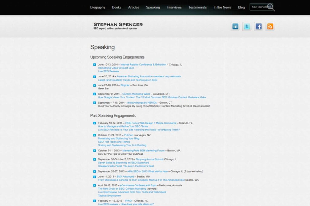 Yeah, that’s an insanely long page, because even back then, a decade ago, or over a decade ago, I had hundreds of speaking gigs. That wasn’t even all of them.