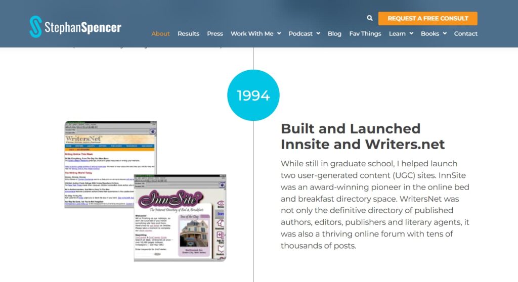 And I guess that’s probably when you decided, Stephan, that you needed to level up your personal brand website because you were being searched for. If we go to Google now and search for your name, it would probably look a lot different back in the day, but you did, you know, always have some form of a knowledge panel because you have books and all those sorts of things.