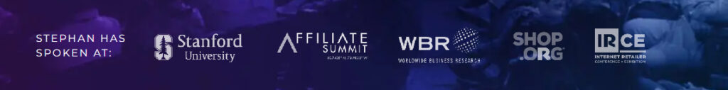 Right, so the Affiliate Summit, IRCE, and speaking at Stanford University, etc. Because that’s relevant, so the social proof is relevant, the call to action is relevant, but it’s simple, it’s clear. Clarity is king.