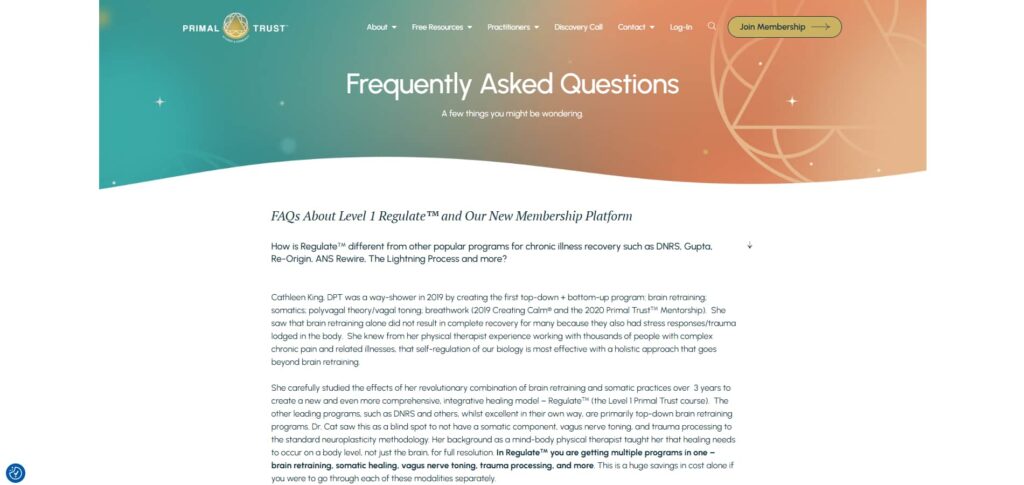 Yeah, sure. So, with this client in particular, they are a well-established brand in the industry of helping people with trauma recovery and nervous system healing, offering a mix of self-paced courses and a community-focused group, right? So, she’s created an awesome community here, which means there’s also a challenge in that when we redesign a client’s website, we’ve to think about that existing community and not be too jarringly different because they can get annoyed, which some of them did with the redesign. We’ll talk about that later.
